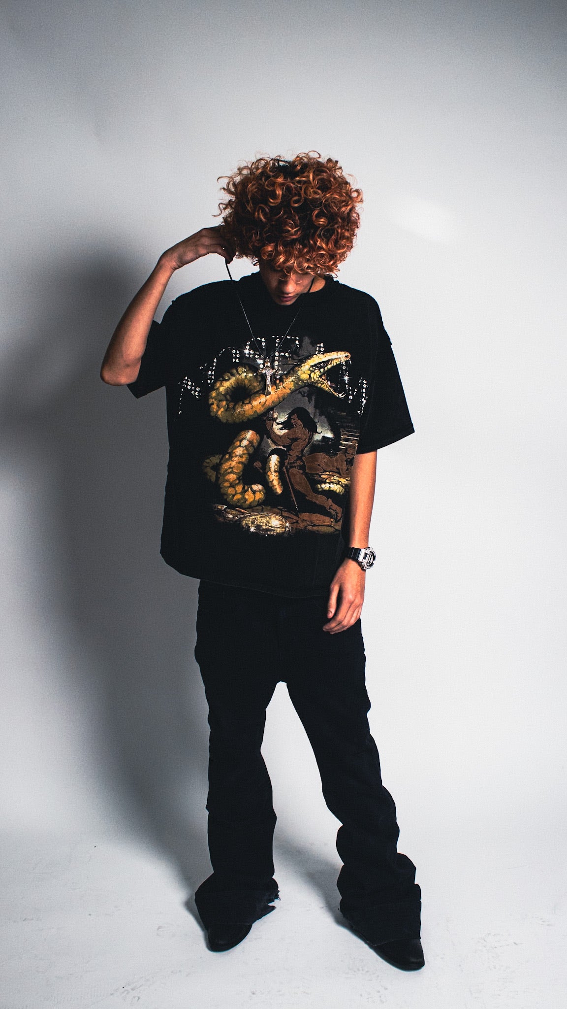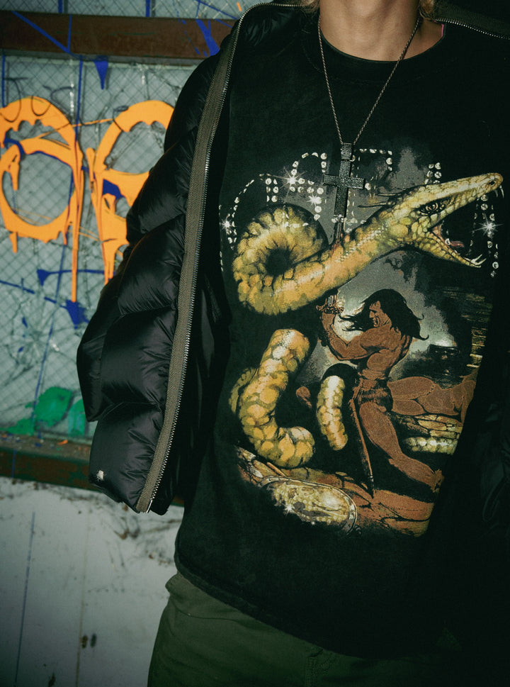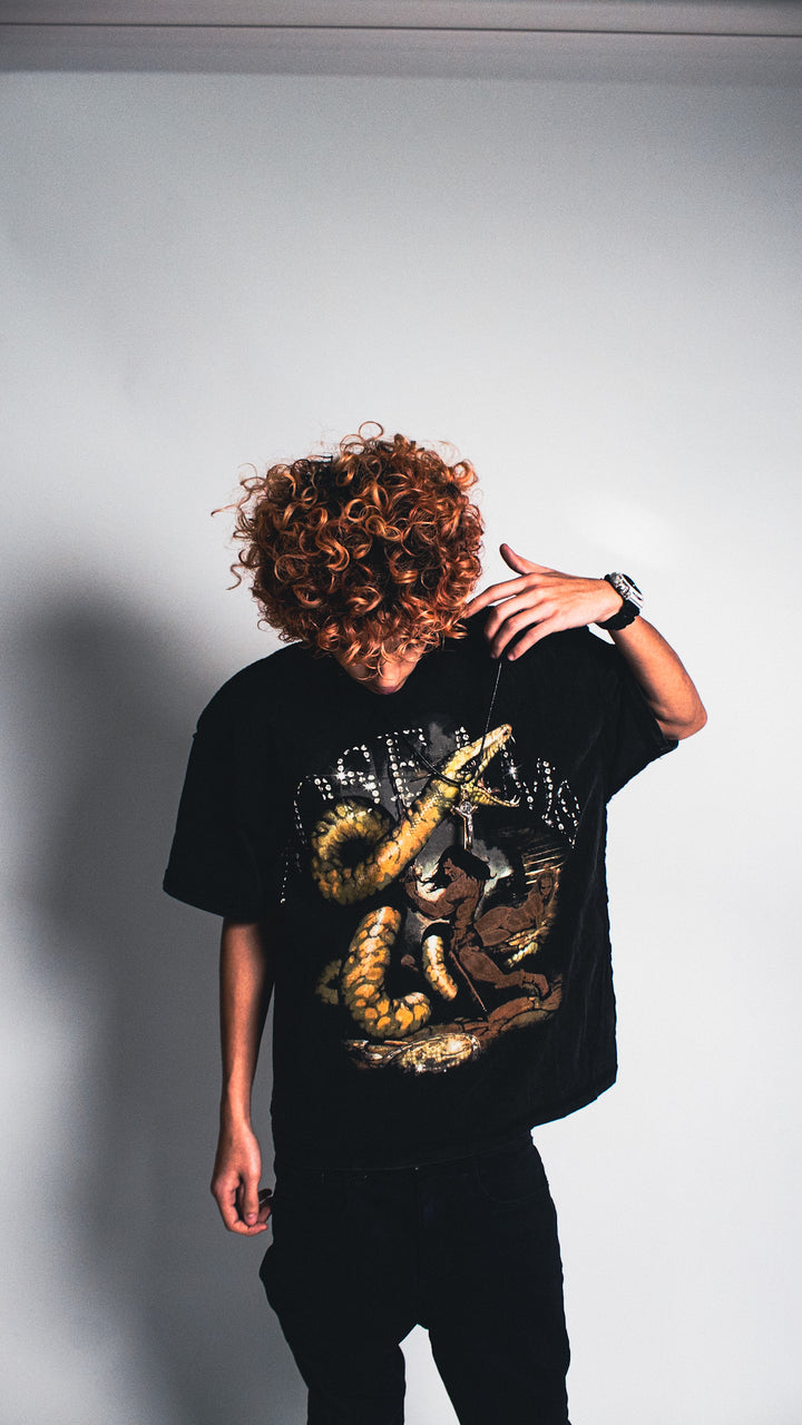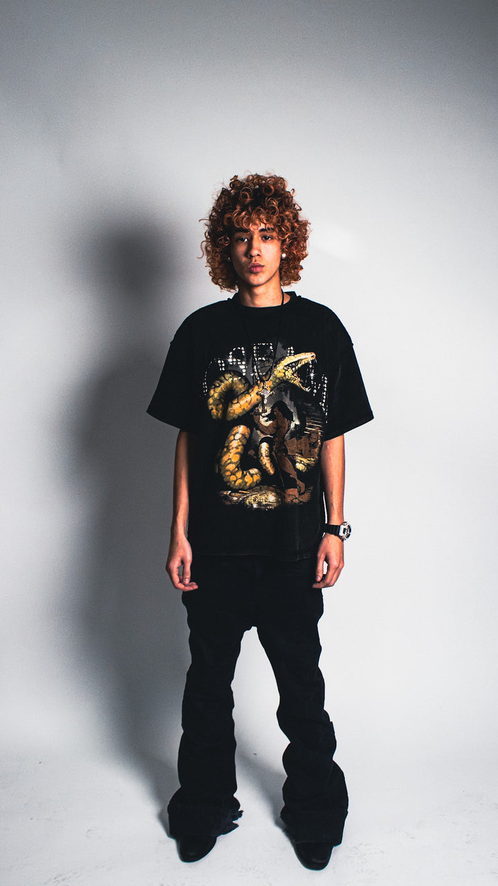 Crafted from heavyweight 280 GSM cotton, this tee delivers a structured feel with a subtle boxy silhouette while fitting true to size. It features a light acid wash for a worn-in, vintage finish and exposed seam detailing that adds a raw, elevated edge. A high-quality DTG print is applied to the front, ensuring sharp detail and long-lasting wear. Designed to stand on its own or layer effortlessly.